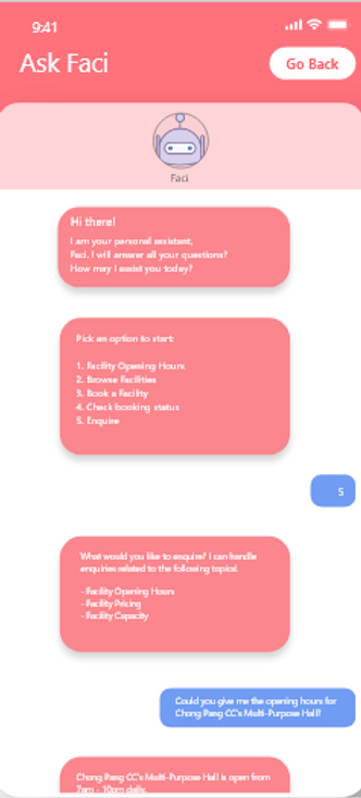 What differentiates this app is the ChatBot feature known as Ask Faci. Where users who may still have complications in understanding how to make a booking appointment. AskFaci will simplify every single step by asking simple straightforward MCQ questions.