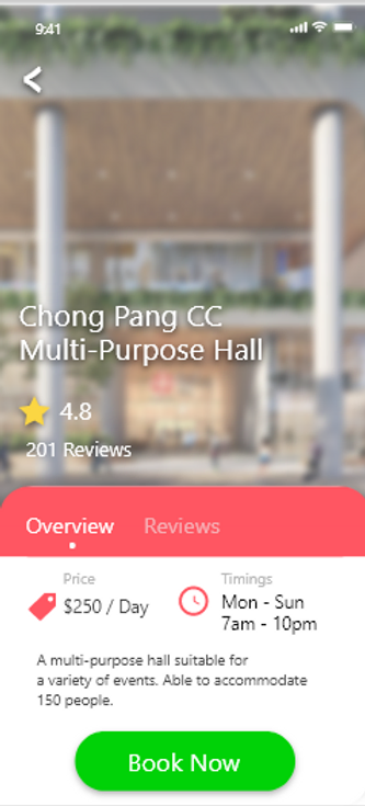 This is the booking page where users can view facilities from the home page and once they have decided on a facility, this is the page where the app takes you too after clicking on a facility.